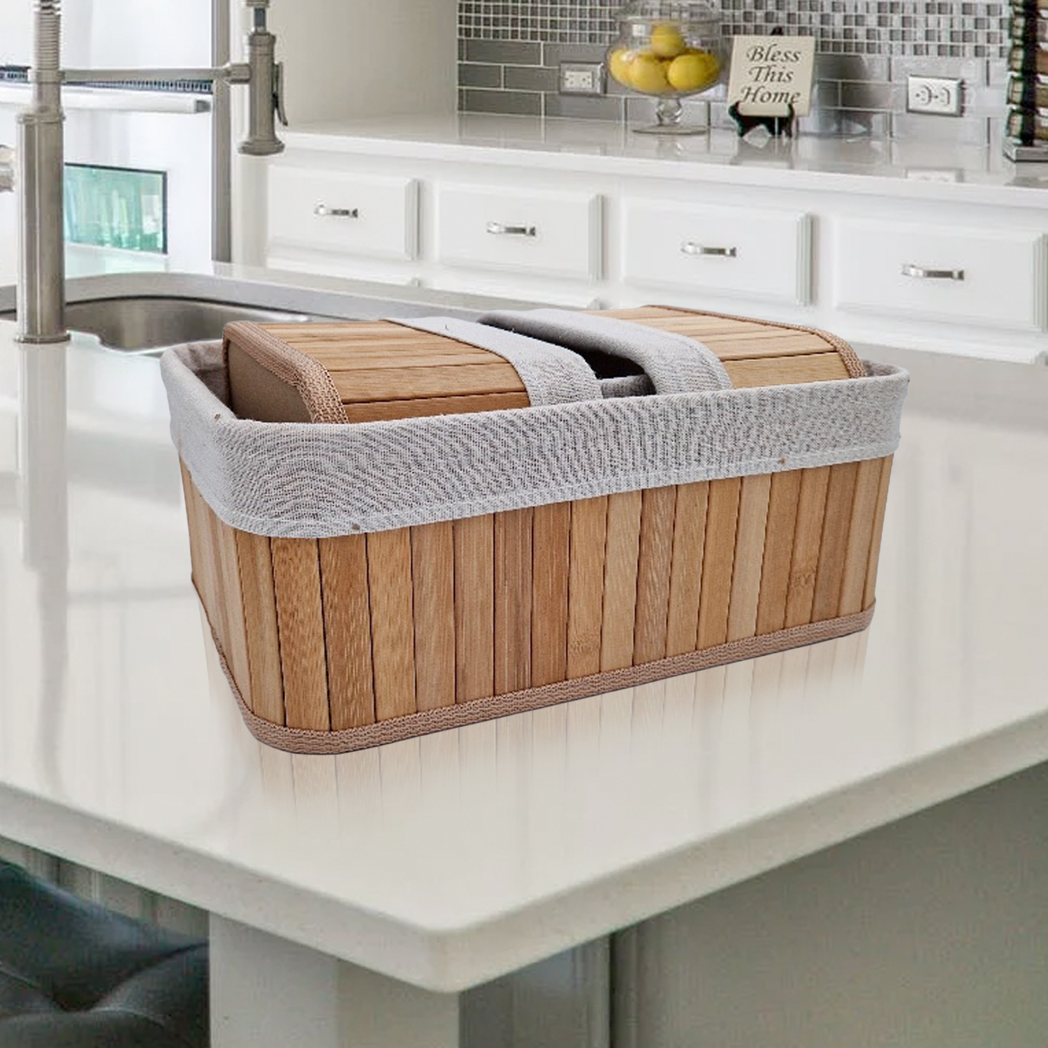 Met bamboe opbergmanden organiseer je je huis met gemak dankzij deze handige stapelbare en royaal grote set. Deze mandjes passen perfect in elke hoek van je huis, of je nu wat meer orde in de badkamer, woonkamer of kledingkast wilt. De decoratieve en natuurlijke uitstraling past vrijwel overal, terwijl de stoffen bekleding de manden set netjes afwerkt.