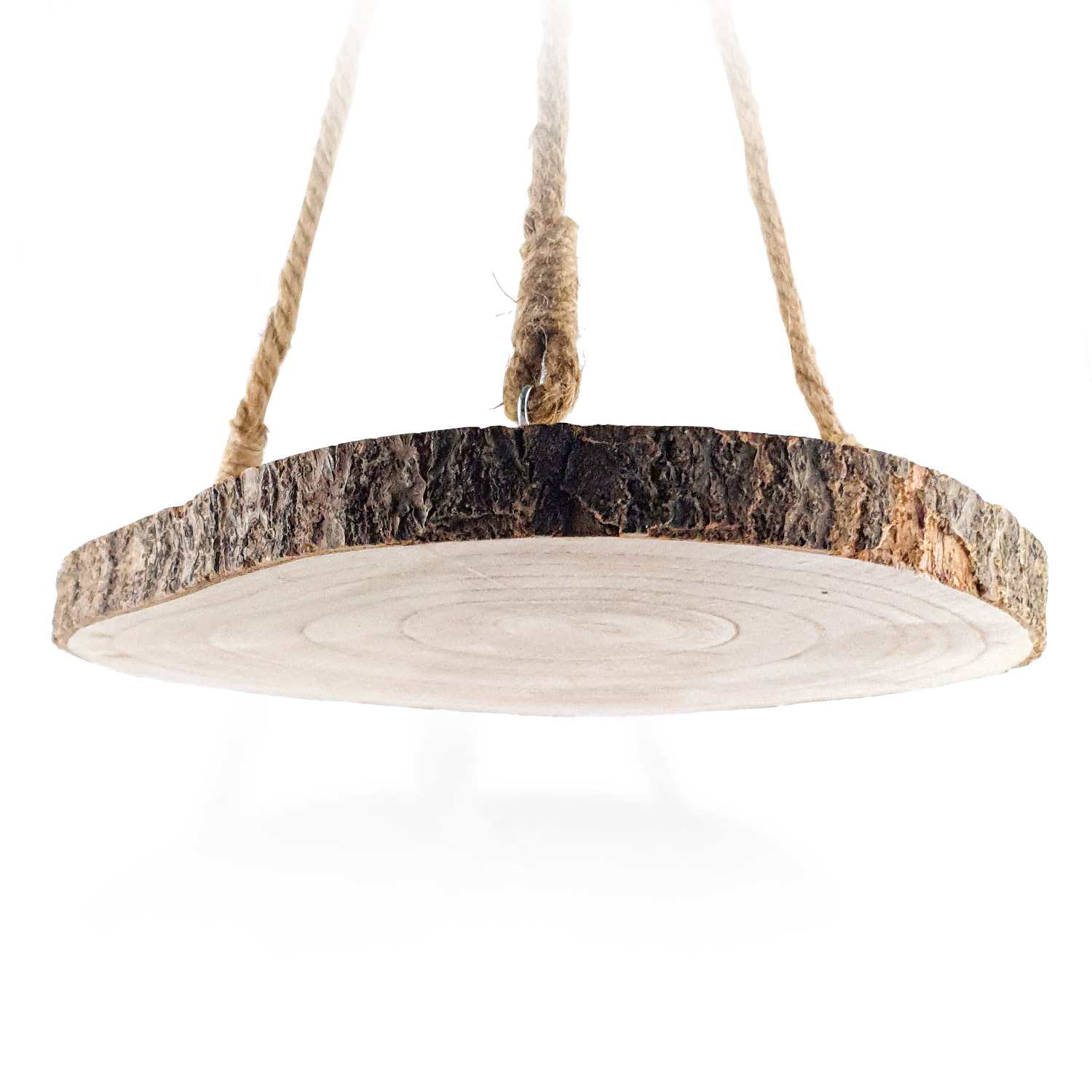 Deze houten boomschijf plant- en decoratie hanger is leuk voor binnen en buiten. Hang hem op aan je veranda of balkon met planten of bloemetjes. Geef de decoratie in je ruimte een prominente plaats. Je kunt de hangplank ook ook vullen met kruidenpotjes en voorraadpotten en hang ‘m op in de keuken. Heel erg veelzijdig en een echt natuurproduct! Door de handige lus in het juten koord is de boomstam schijf eenvoudig en overal te monteren. Het robuuste hout van een stam en schors geeft de planthanger een stoer en vooral natuurlijke uitstraling. De afmeting is minimaal 33cm in diameter. Doordat dit een uit de natuur vervaardigde plant hanger is, kan het product qua boomschors iets afwijken van de afbeelding.