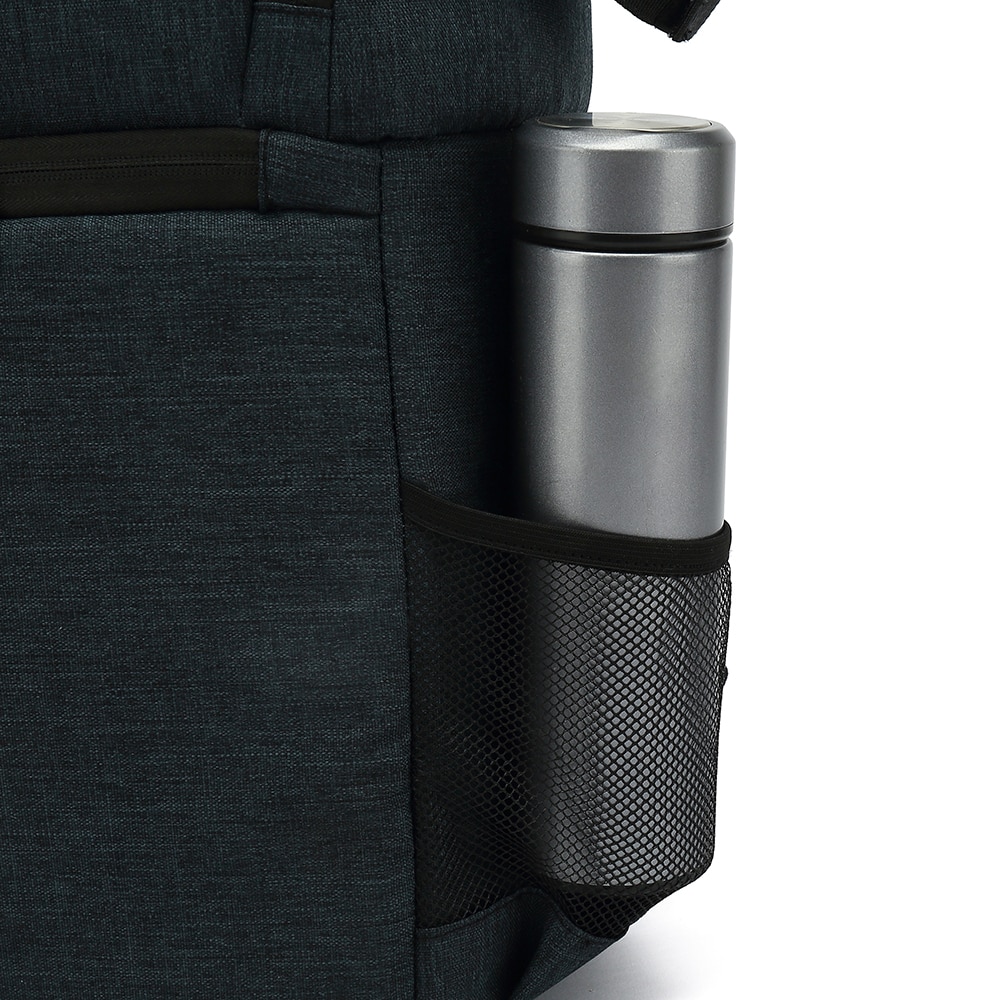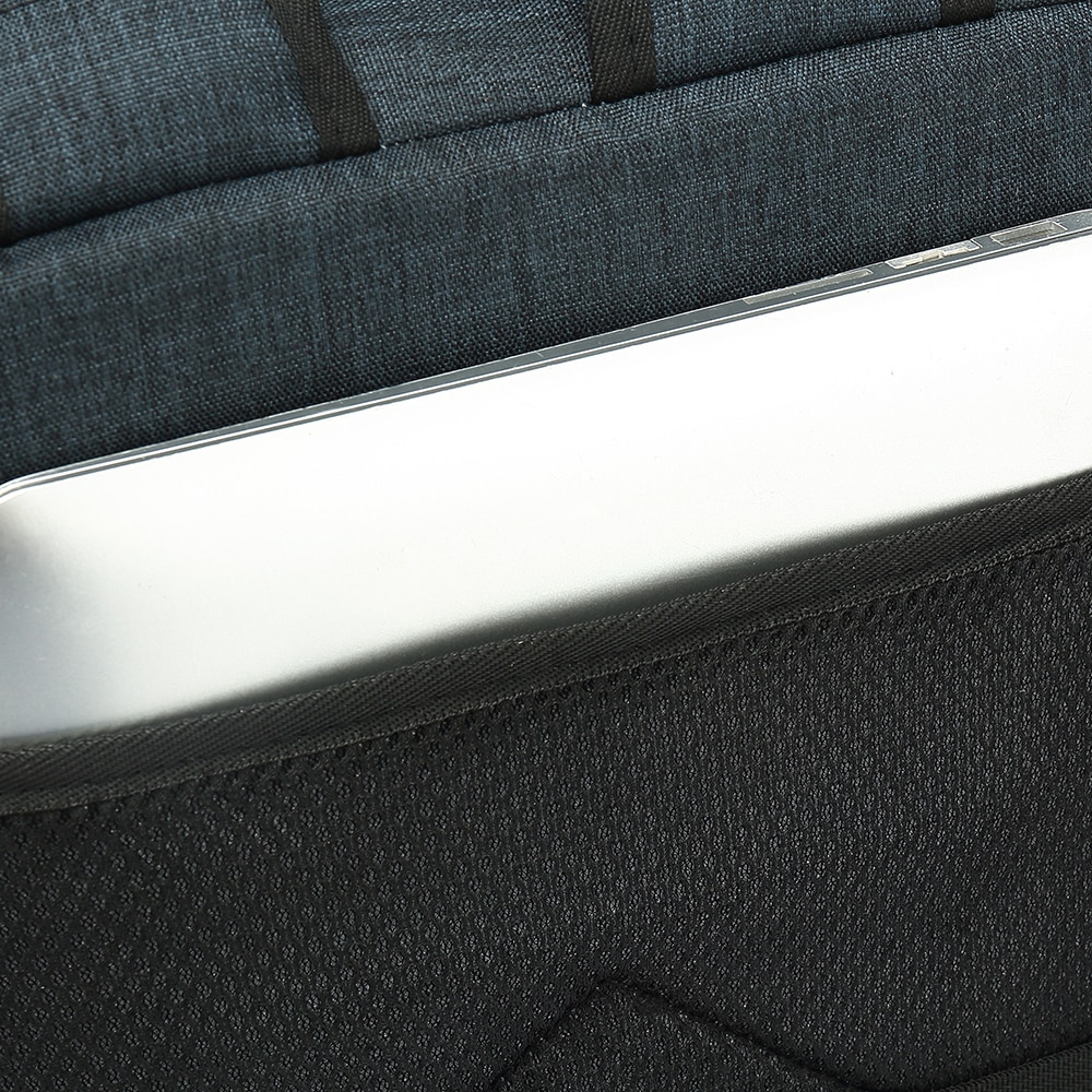 Het gevoerde, gazen achterpaneel biedt comfort en ventilatie. Zeer veel vakken aan voorzijde en binnenzijde.