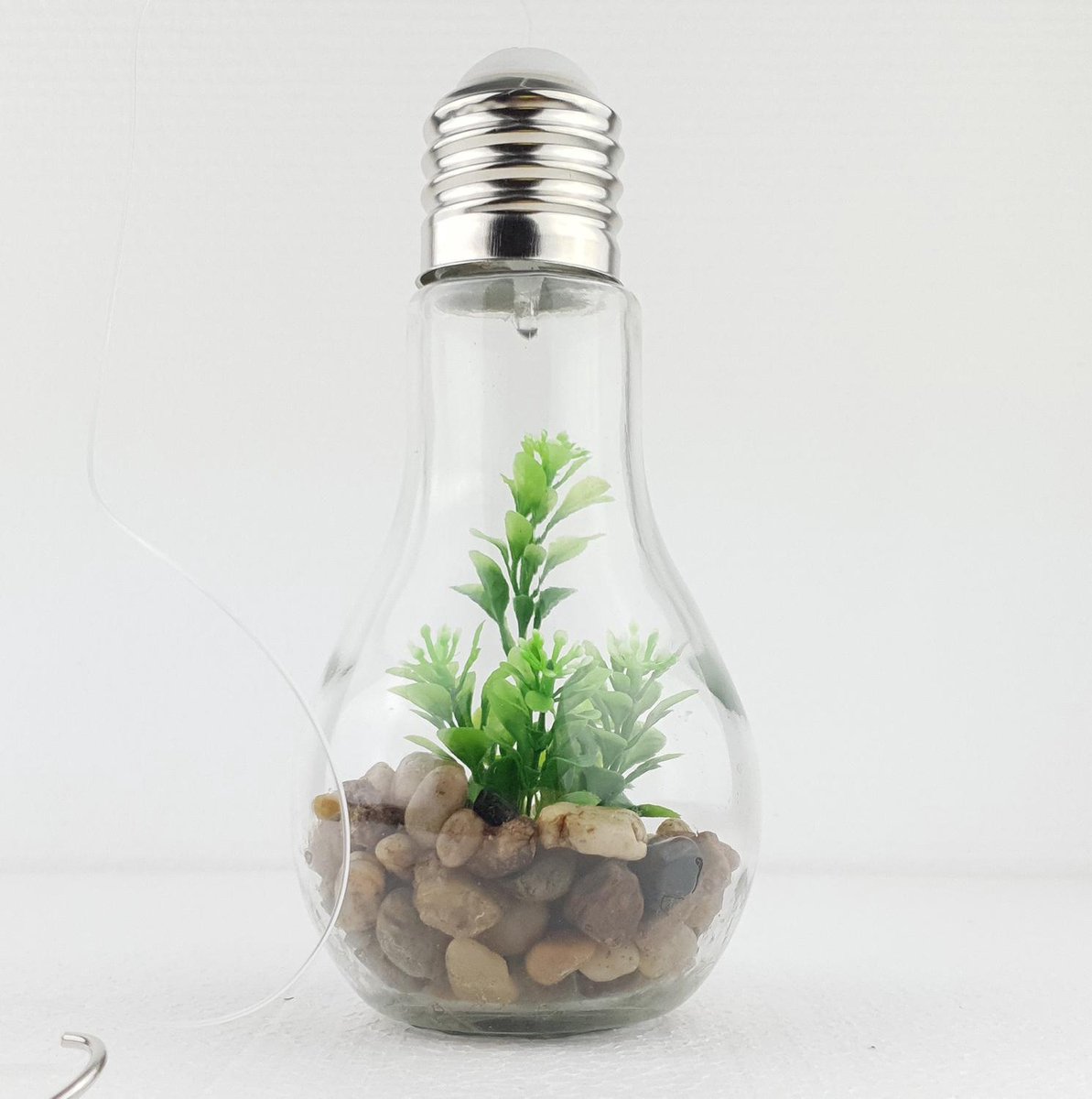 Decoratie LED lamp met plant – 19x9cm – hang ledlamp met kunstplantje – Woon accessoire – Plant glas