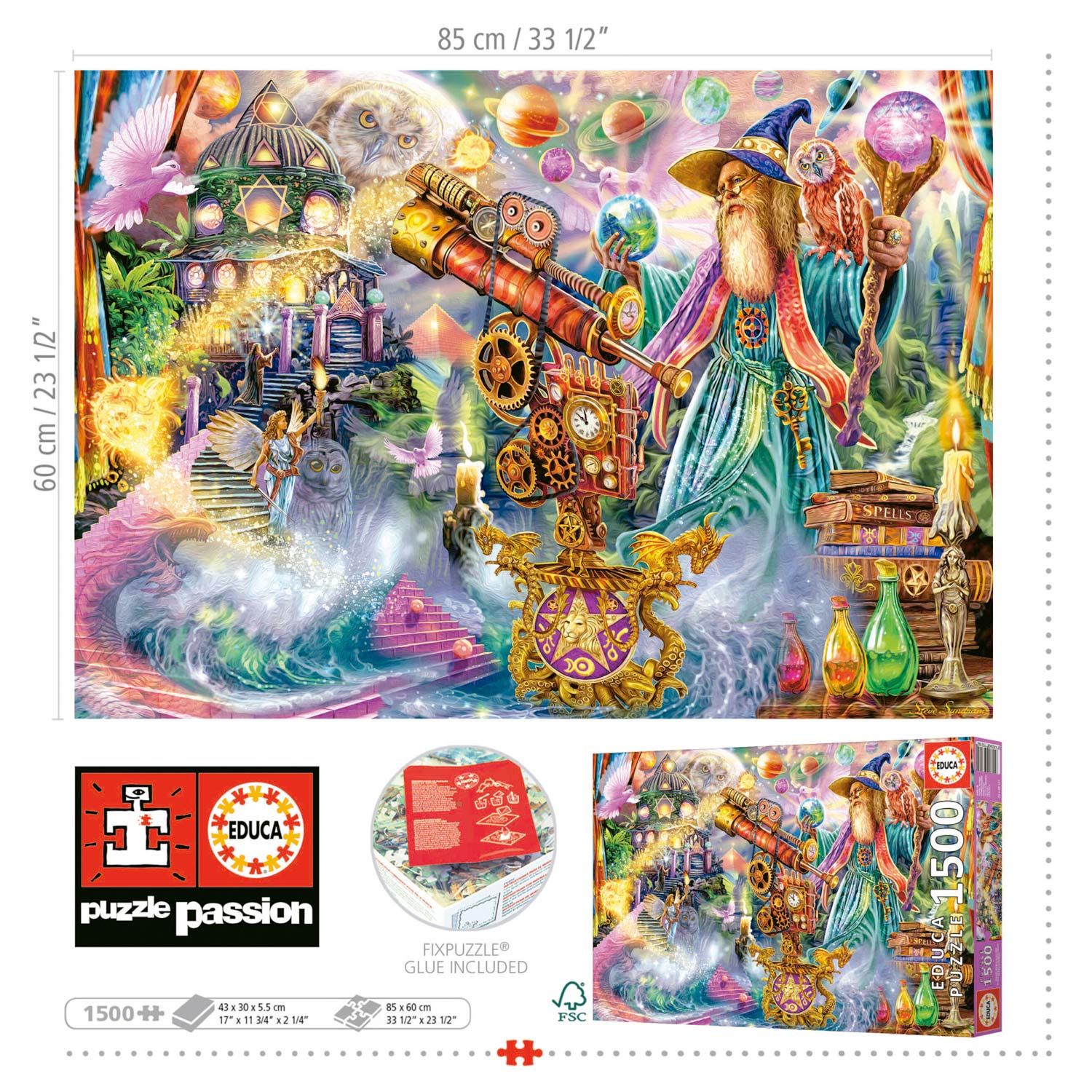Ontdek een kleurrijke wereld met een tovenaar in deze Educa legpuzzel van 1500 stukjes. Het eindformaat is 85×60 centimeter voor extra veel puzzelplezier.