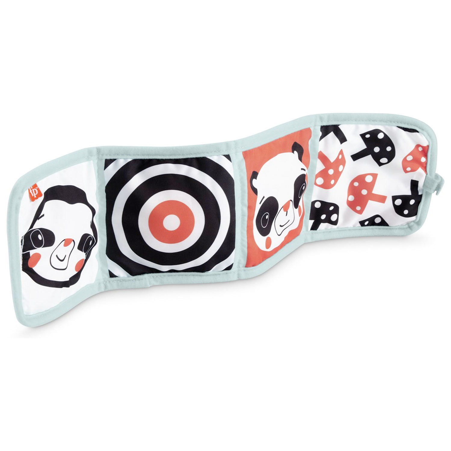 Zacht activiteitenspeelgoed met 4 dubbelzijdige vlakken met contrasterende zwart-witpatronen, vrolijke kleuren en snoezige dierenvriendjes