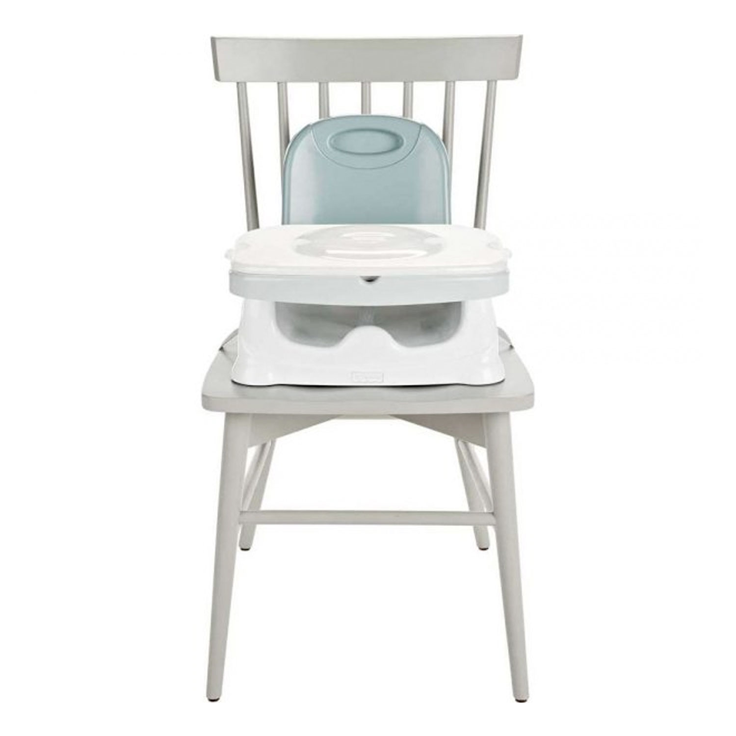 Klap het stoeltje in, verstel de schouderband en… je bent klaar met een draagbaar stoeltje voor je kleintje binnen handbereik. Schuif de stoel omhoog – de hoogtebanden kunnen eenvoudig en veilig aan de meeste eetkamer- en keukenstoelen worden bevestigd.