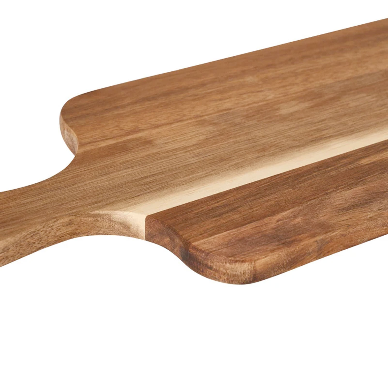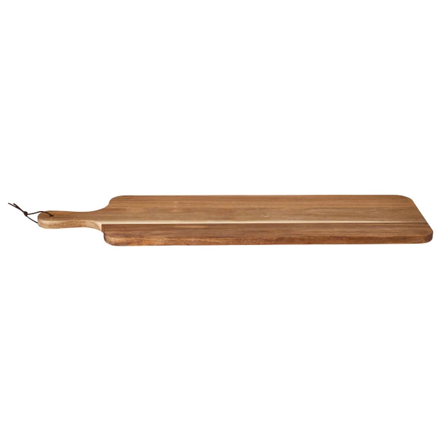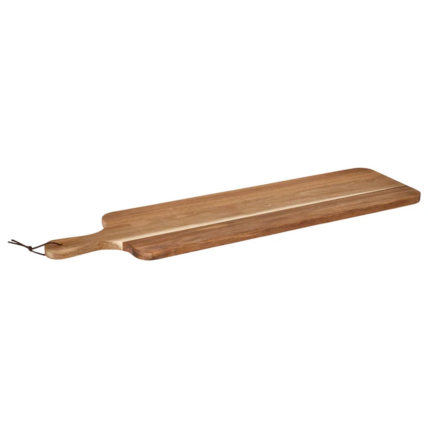 Serveer je gasten in stijl met deze grote serveerplank met handvat. Deze luxe borrelplank met handvat is gemaakt van Acacia hout en past met zijn langwerpige rechthoekige design in elk interieur.