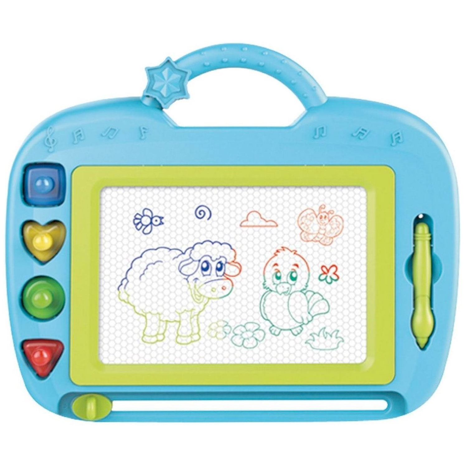 Maak de mooiste tekeningen op dit magnetische tekenbord in de kleur Blauw! Dit tekenbord is rijkelijk uitgerust en wordt geleverd met stempelvormen en een pen. Lekker creatief aan de slag met dit magnetische tekenbord en maak de mooiste creaties. Op dit magisch teken bordje maak je de mooiste tekeningen. Maak gebruik van de magnetische pen en stempels. Wil je een nieuwe tekening? Schuif de hendel dan heen en weer en je vel is weer helemaal leeg. Dit tekenbord kun je makkelijk overal mee naartoe nemen.