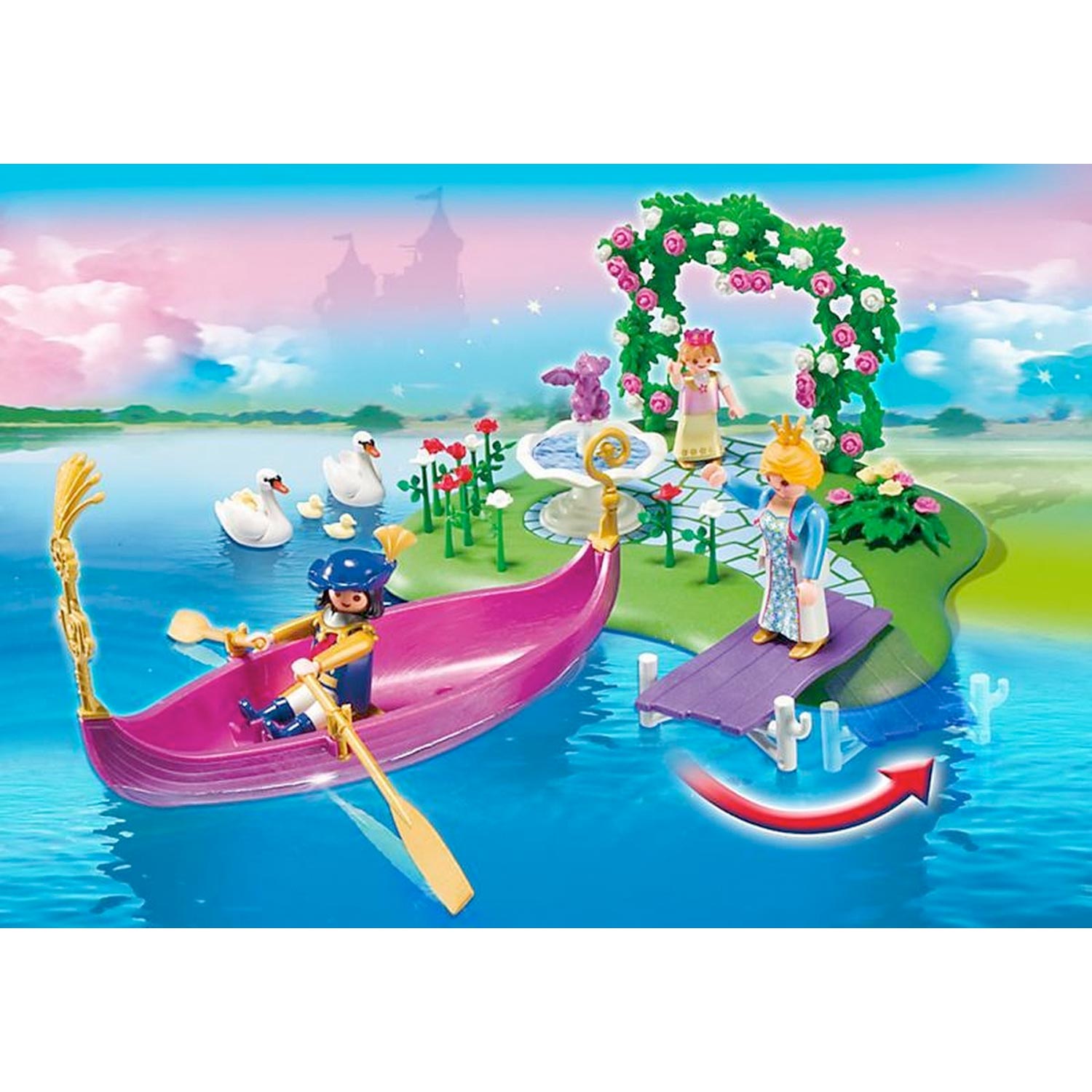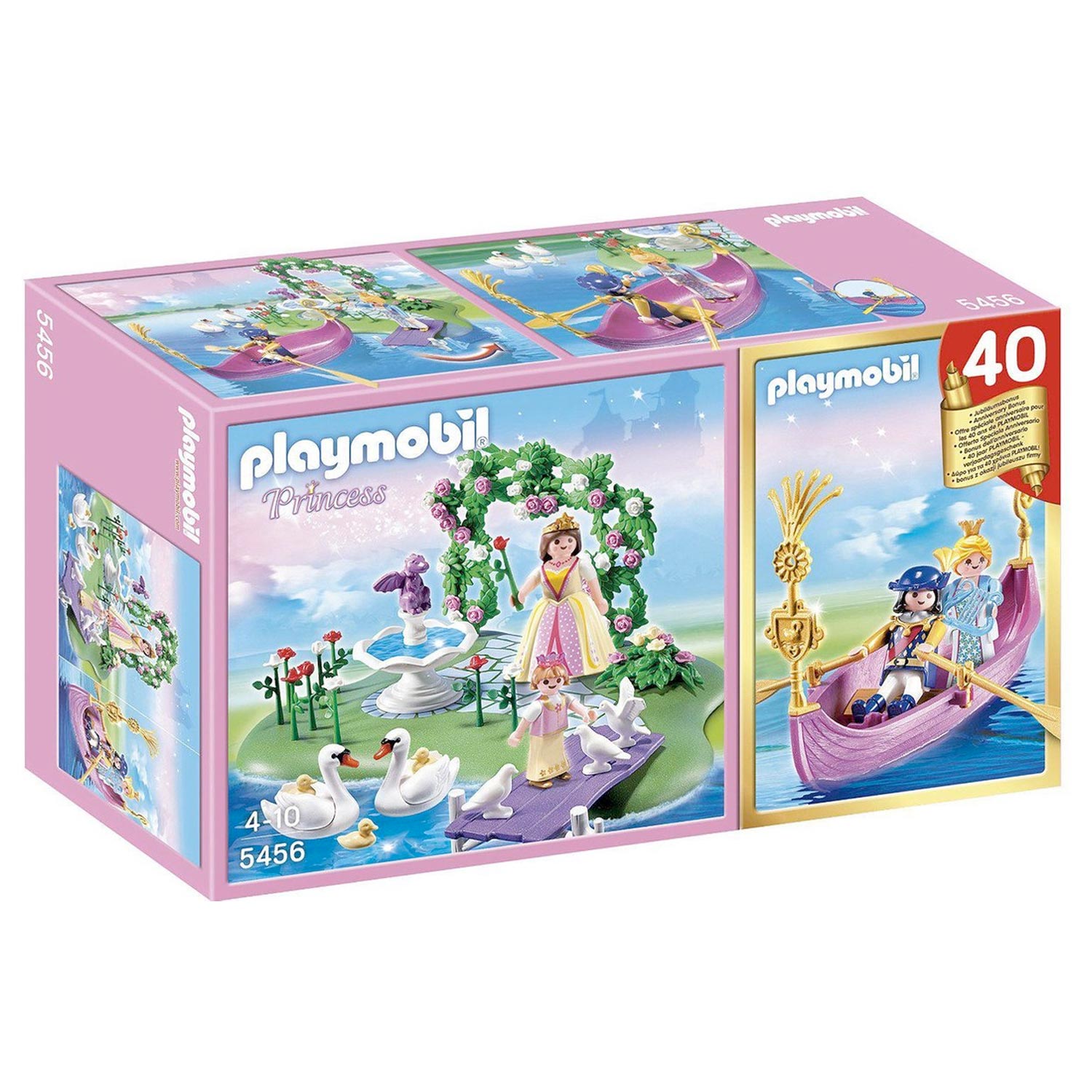 Beleef een sprookjesachtig avontuur met de Playmobil Prinsesseneiland en romantische gondel, een speciale Playmobil-set ter ere van het 40-jarig bestaan van Playmobil. Deze compacte set bevat alles wat je nodig hebt voor eindeloos speelplezier: vier betoverende figuren, een prachtige roze gondel, een fontein en schattige dieren.
