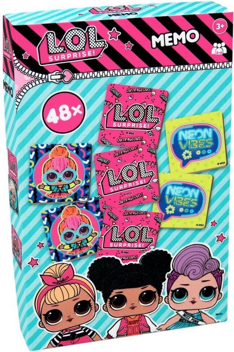 LOL Surprise Memo Spel met 48 memo kaarten. Hoe goed onthoud jij waar alle kaartjes liggen? L.O.L. Surprise! Memo is een leuk spel met in totaal 48 kaartjes. Vind jij alle 24 paren? Het memoryspel is geschikt voor spelers vanaf 3 jaar.