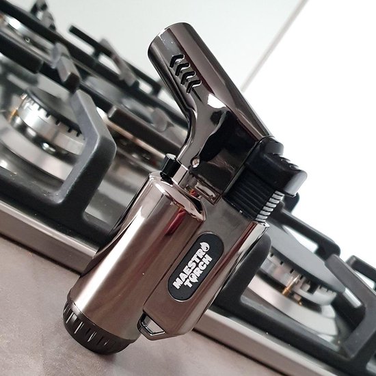 Maak indruk met de fantastische stijl en multiflame brandpunten van deze keuken aansteker. De keukenbrander heeft een intensiteitsregelaar aan de onderzijde waarmee je de vlammen perfect afstelt. Komt op handige chique standaard die je als tool kunt gebruiken bij het afstellen. De lock-functie laat de vlam continue branden zodat je veilig de knop kunt loslaten. Deze navulbare brander werkt op butaan gas en is gemakkelijk bij te vullen.