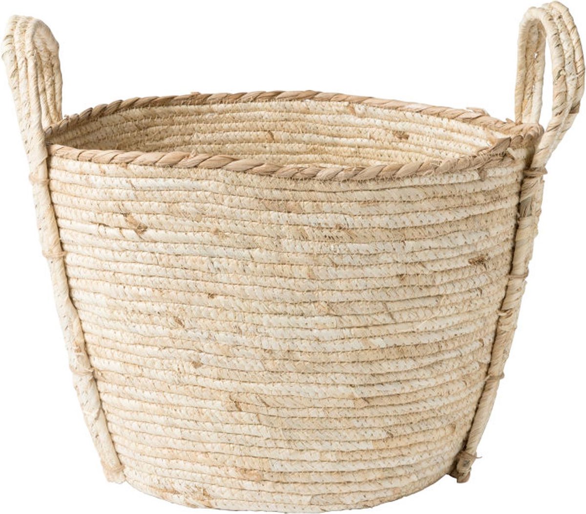 De stevige structuur zorgt voor een solide mand en is voorzien van twee handige hengsels aan de bovenzijde. Combineer met andere manden voor een decoratieve look. Het gedetailleerde riet geeft de mand een stoer en vooral natuurlijk design. Het mandje voor planten is net even anders dan een standaard bloempot en dat maakt het natuurlijk heel leuk! De afmeting is 26×21 cm en is gemaakt van 75% riet & 25% mais, lekker duurzaam dus.