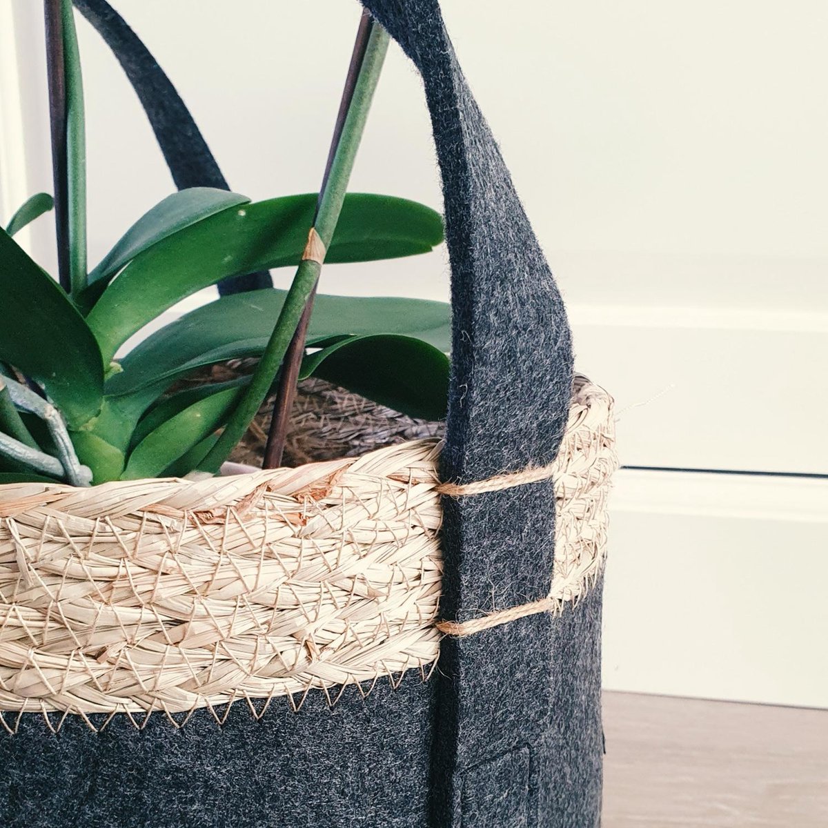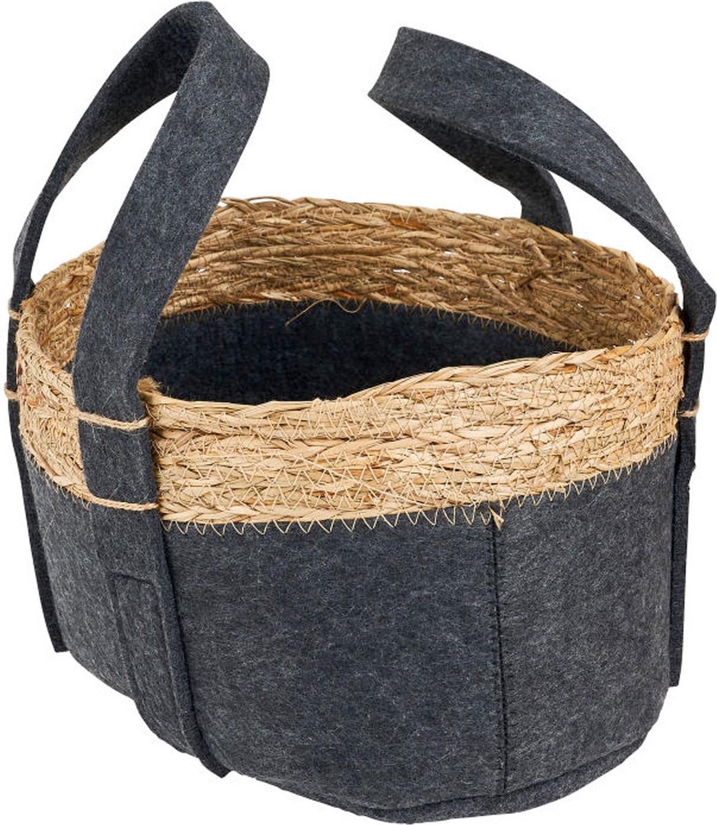 Mand 35x18cm – Grijs Naturel – Vilt – Zeegras – met hengsel – Natuurlijke plantenmand – Planten mand