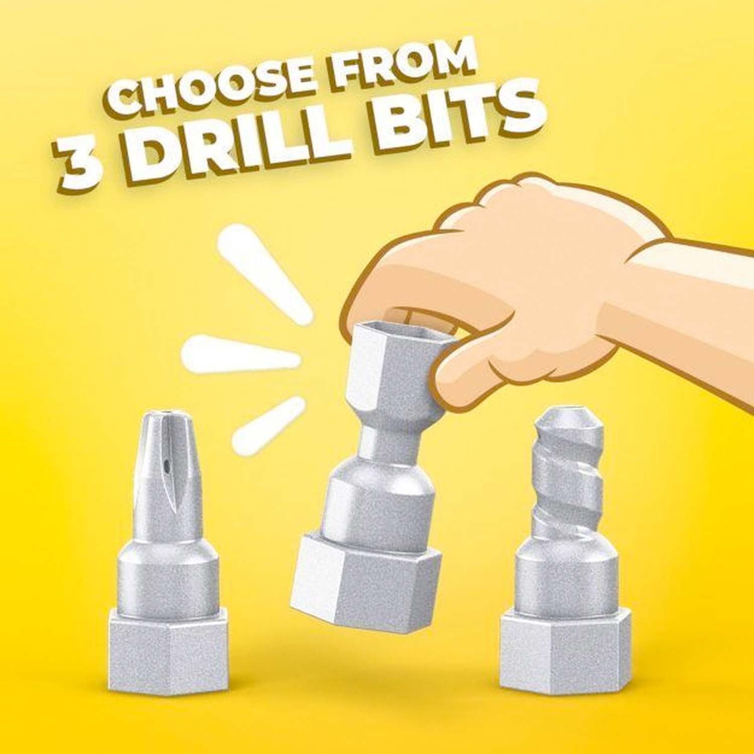 De set bevat 3 verschillende boorboren – een flatkop, hex en booruiteinde – waarmee kleine bouwers alles kunnen creëren wat ze maar bedenken. Voeg daarbij speciale stukken zoals 2 plastic schroeven en 2 plastic tandwielen, en de mogelijkheden worden eindeloos!