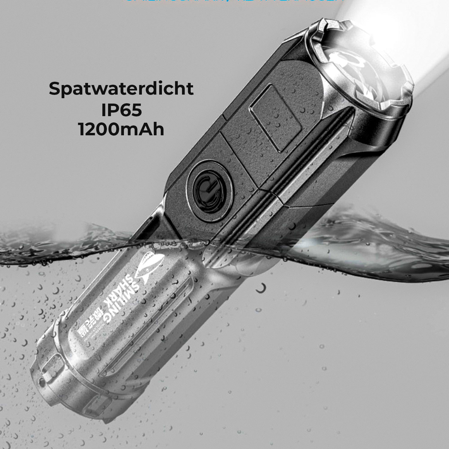 Door de inzoombare verlichting werk je met een brede of smalle lichtstraal. Voorzien van een fel, medium, stroboscoop en SOS signaal verlichting is deze krachtpatser alles wat je nodig hebt. De krachtige XPE LED is sterker dan autoverlichting en zorgt voor een geweldige lichtstraal. Opladen doe je met USB en de lamp is spatwaterdicht IP65. De 2000 lumen lichtbron zorgt voor een ontzettend krachtige lichtstraal.