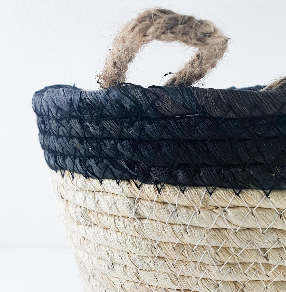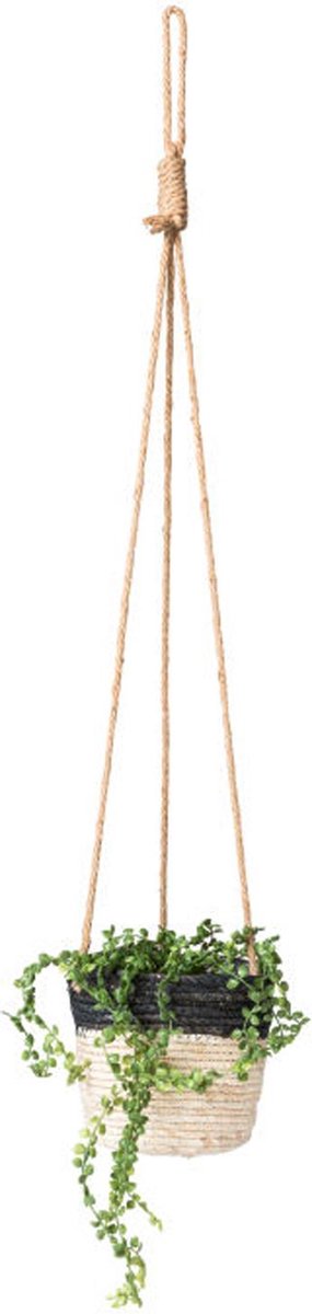 Product Eigenschappen van de Plantenhanger 18x15cm Zwart/Naturel | Hangende mand | Handgemaakt | Planten-houder / Hang-plant | Planten Accessoires | Hangmand |