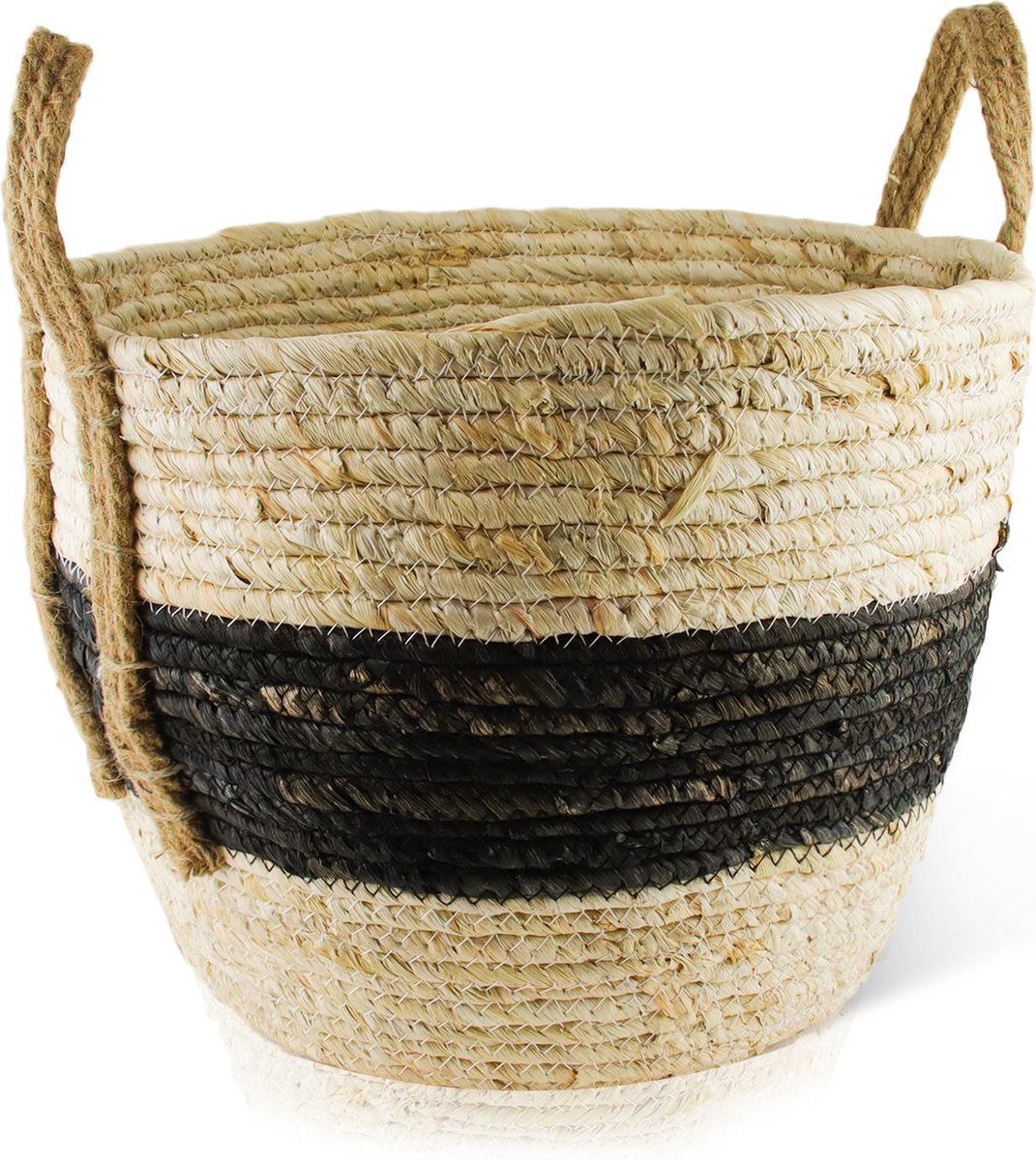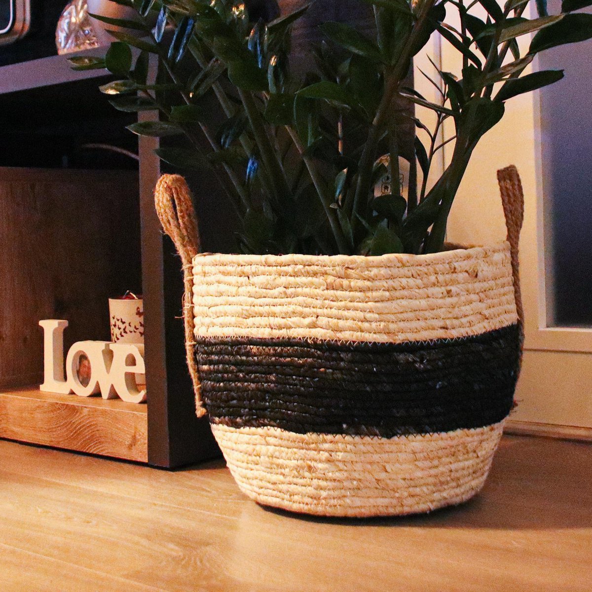 Door de kwalitatieve structuur is de mand erg stevig en is voorzien van twee handige hengsels. Het zwart & naturel op de mand maakt je eigen look met andere mandjes helemaal af. Het robuuste gedetailleerde riet geeft de planten mand een stoer en vooral natuurlijk design. Het mandje voor planten is net even anders dan een standaard bloempot en dat maakt het natuurlijk heel leuk! De afmeting is 30×22 cm en dus mooi groot. Deze mand is gemaakt van 75% riet & 25% mais, lekker duurzaam dus.