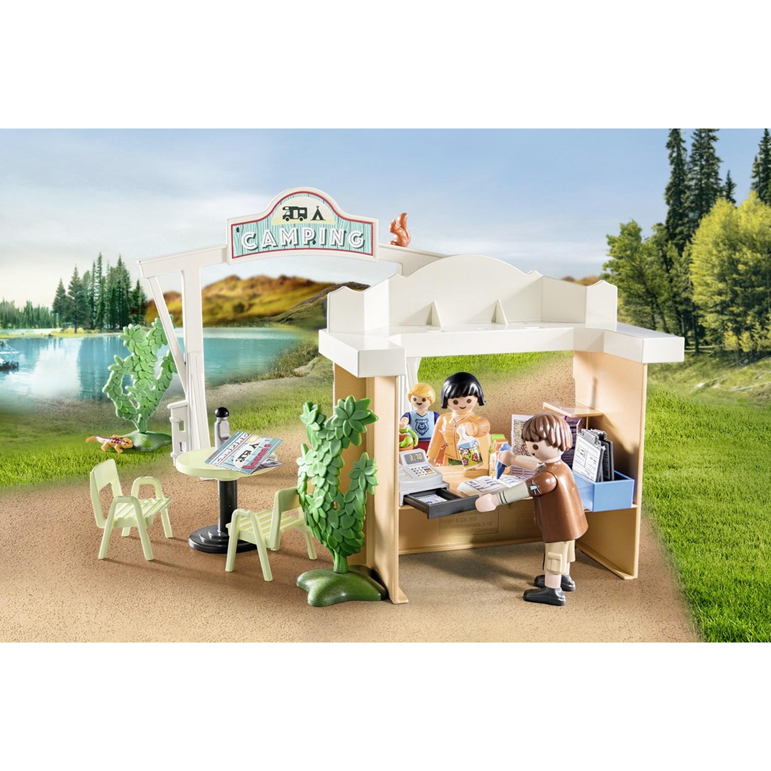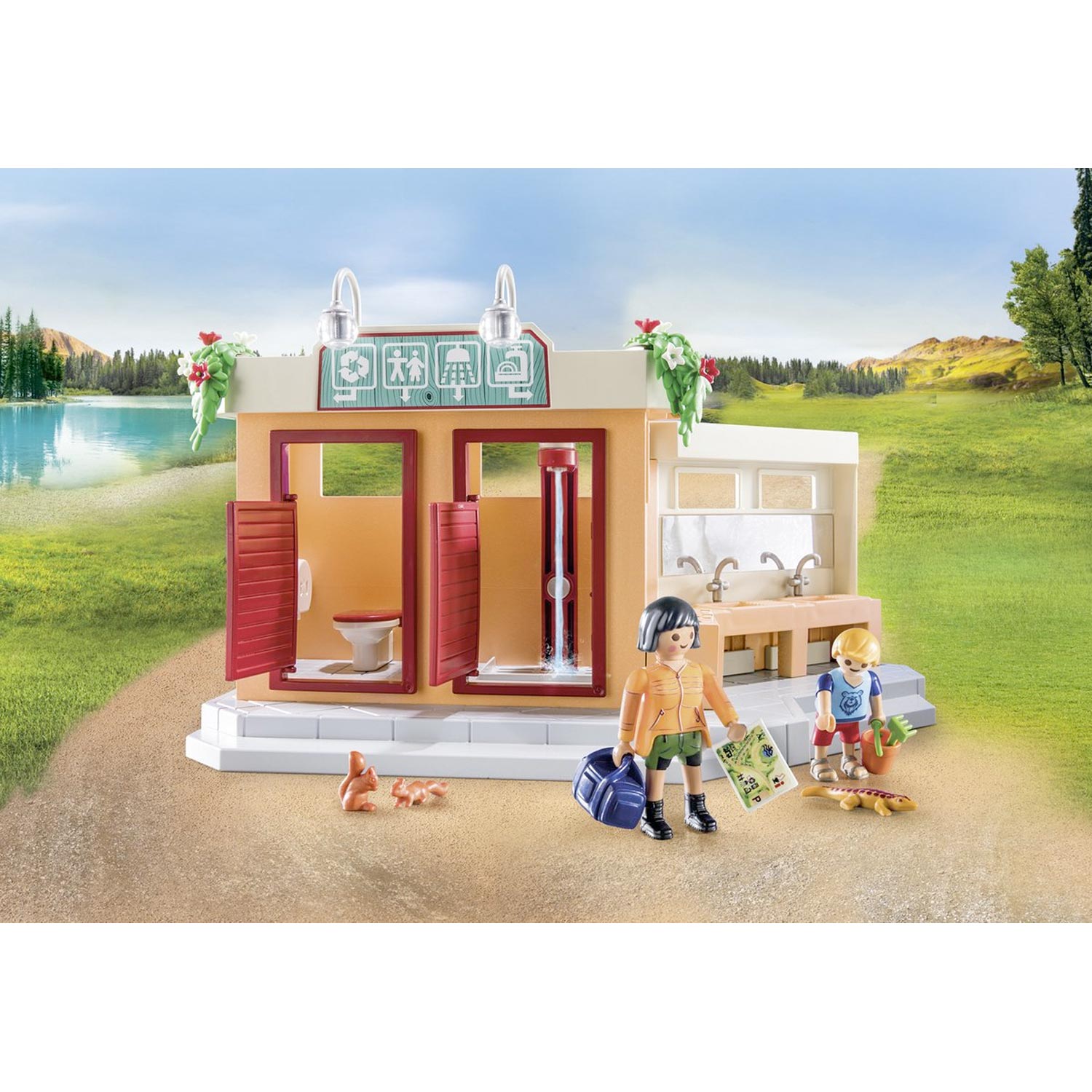 De PLAYMOBIL camping is de ideale set voor kleine kampeerfans. Naast comfortabel kampeermeubilair hebben de vakantiegangers ook de beschikking over een schoon sanitairgebouw en een keuken. Bij de kiosk kun je lekkere snacks halen. Een prachtige camping om je helemaal thuis te voelen en heerlijk te ontspannen. De gedetailleerde kampeerspeelgoedset bevat drie PLAYMOBIL-figuren, een sanitairgebouw, een kiosk, tafel, stoelen en andere geweldige extra’s voor leuke rollenspellen. Met de verschillende PLAYMOBIL kampeerspeelsets (apart verkocht), worden kinderen geïnspireerd om hun eigen verhalen te vertellen.
