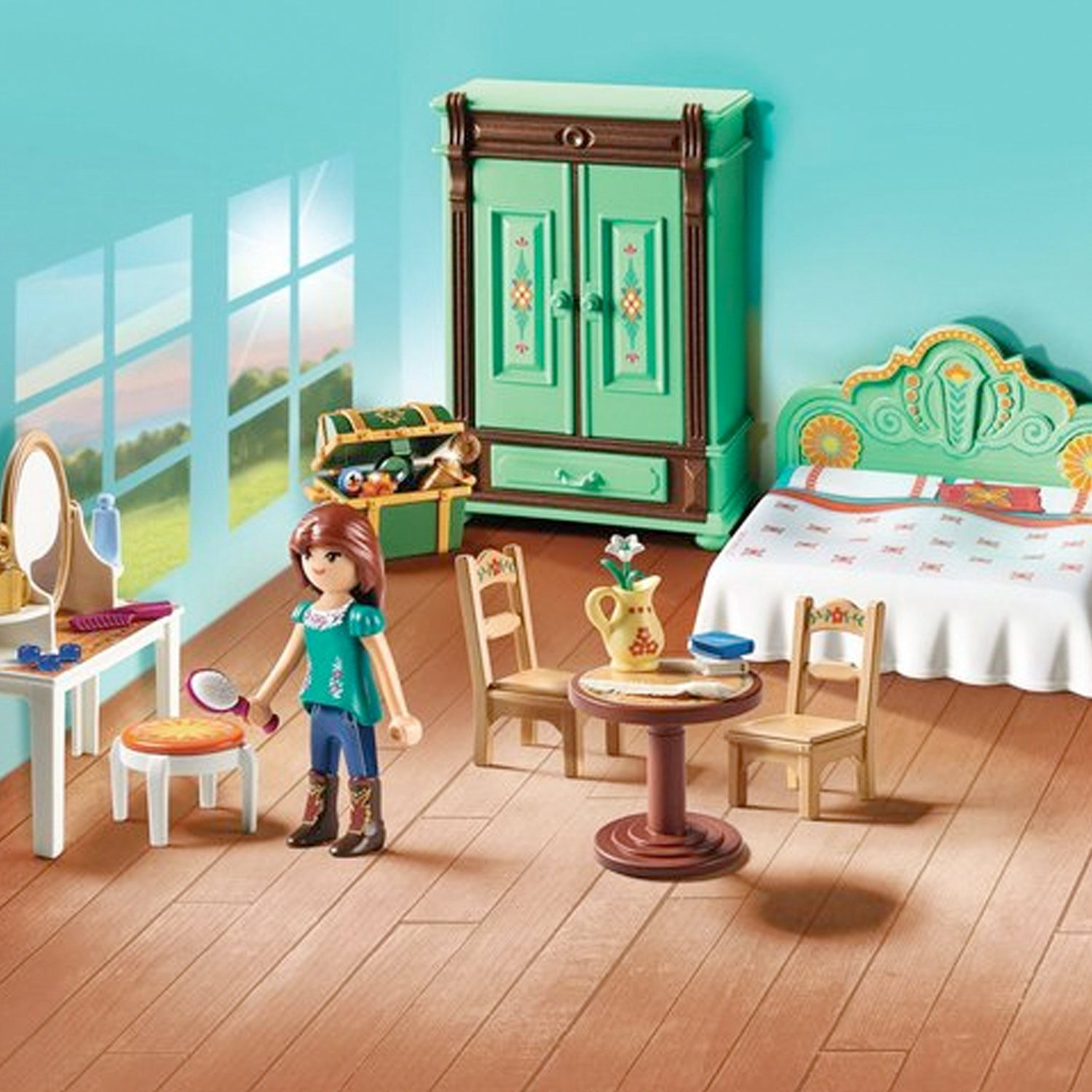 Laat je fantasie de vrije loop in Lucky’s slaapkamer van Playmobil Spirit, waar ze studietijd doorbrengt, plannen maakt met Spirit en haar vrienden. Ontdek haar schatkist vol kostbare souvenirs en haar ruime kledingkast om al haar outfits op te bergen. Lucky begint haar dag aan de mooie kaptafel, waar ze voor de grote spiegel zit en haar haar borstelt.