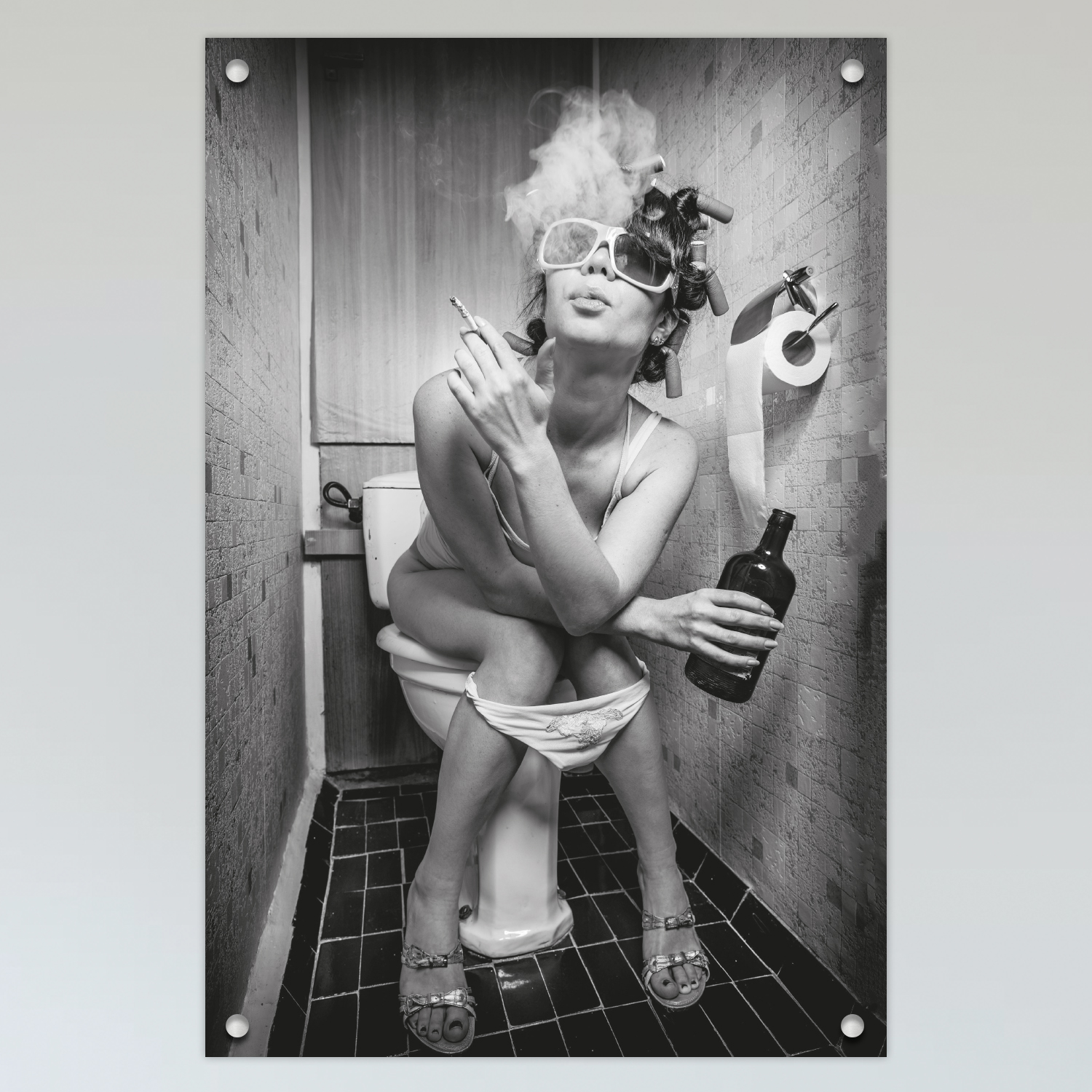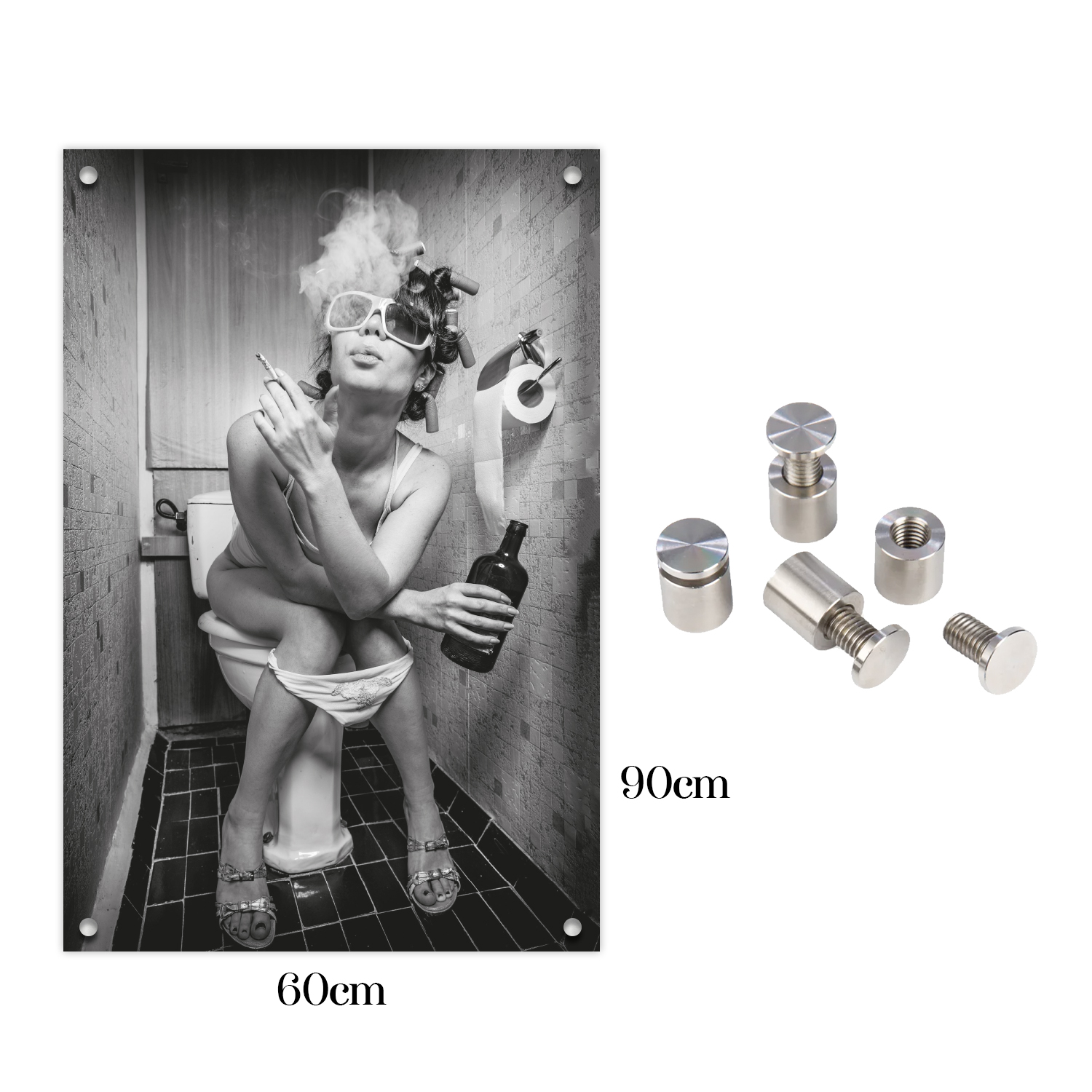 Plexiglas schilderij – Poster – Muurdecoratie – Smoking toilet woman – met 4 RVS afstandhouders