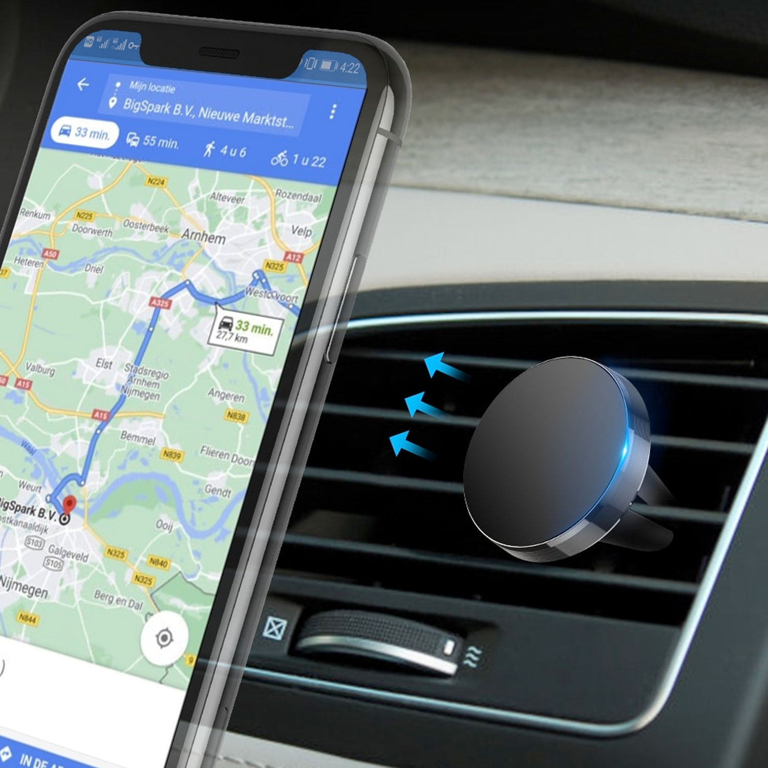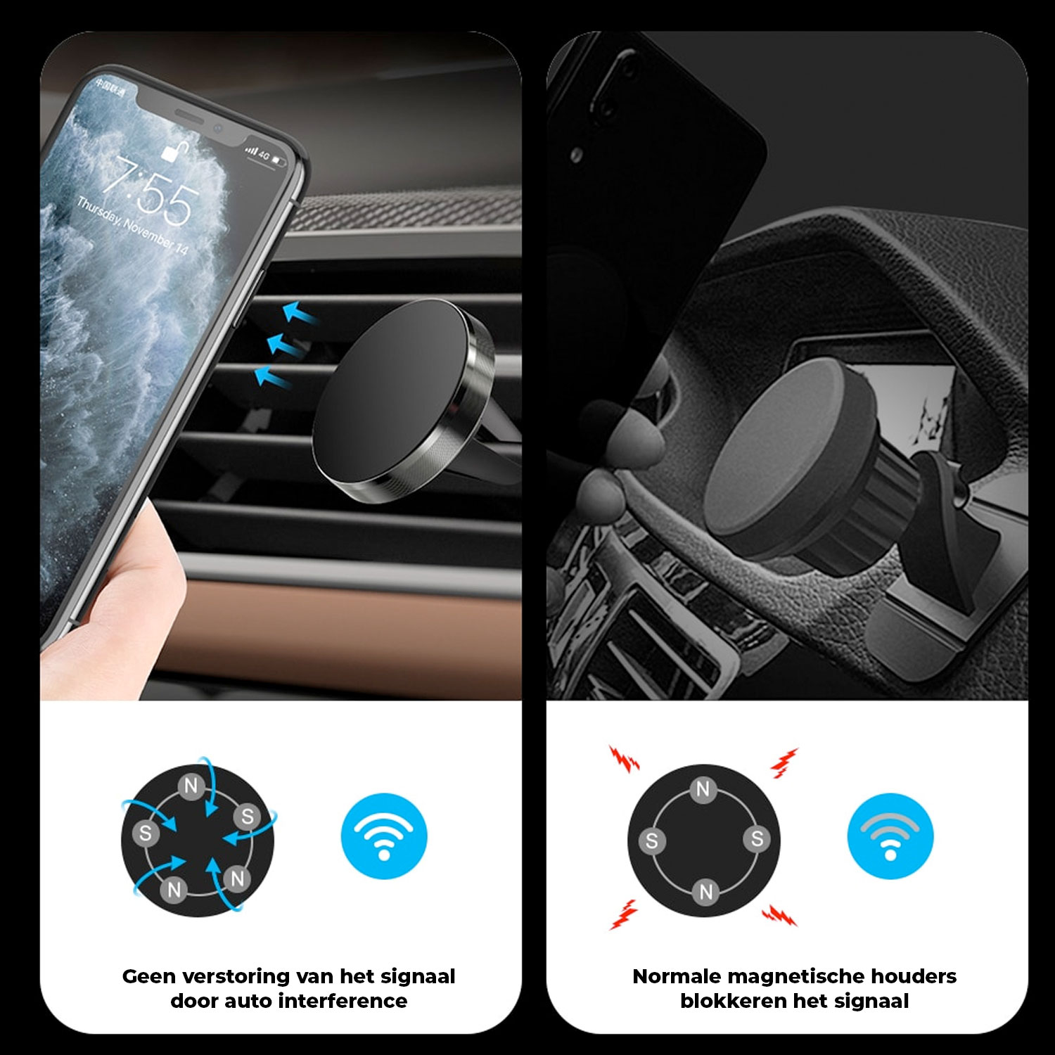 Bedien de auto houder voor telefoon met slechts 1 hand. De smartphone blijft door de sterke magneet goed vastzitten.