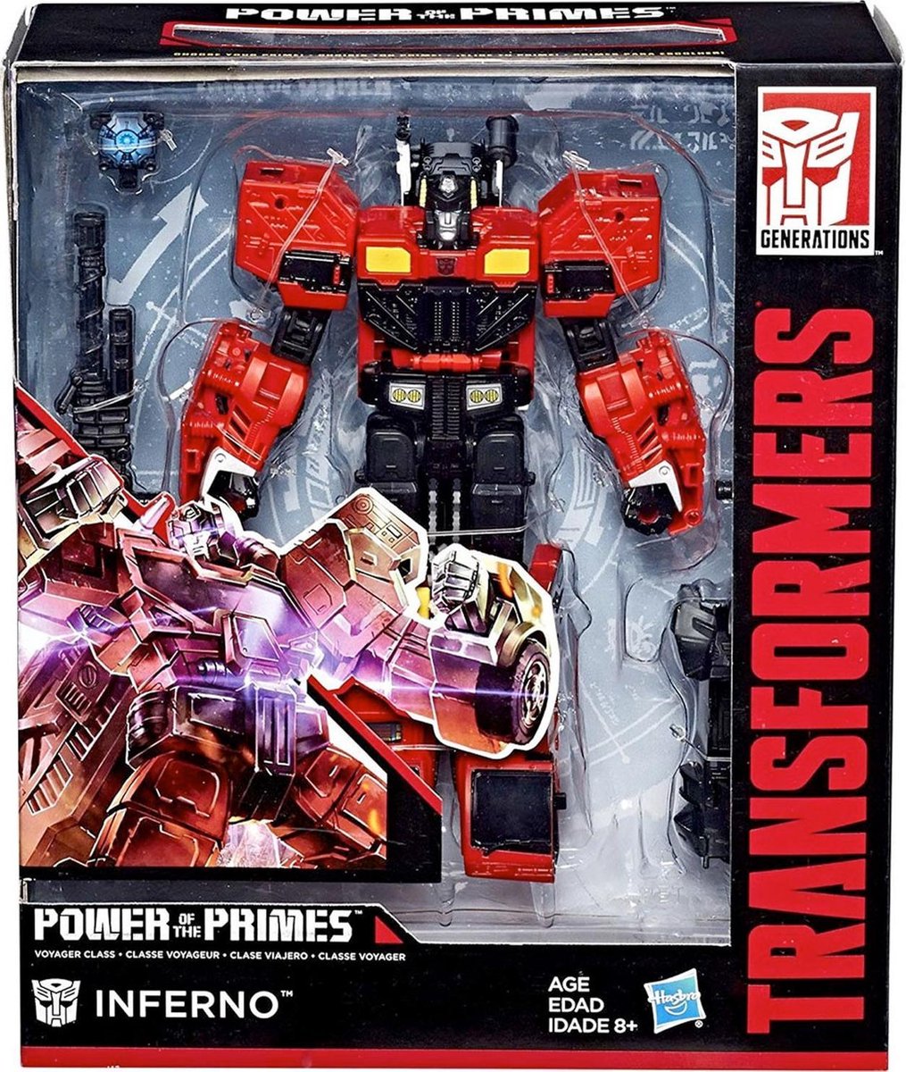 De Transformers Power of the Primes oorlog tussen de Autobots en Decepticons woedt, en met de machtige Autobot Inferno in de strijd, zal de actie steeds intenser worden! Deze geweldige Inferno is een enorme kracht voor de Autobots in de robot mode met een enorm arsenaal aan blasters en andere wapens.