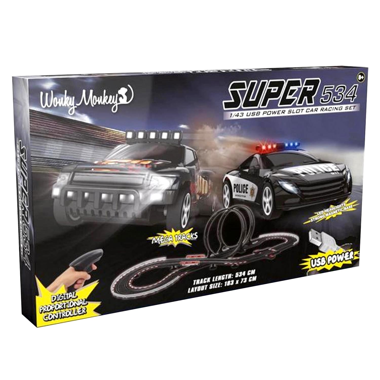 Beleef eindeloos raceplezier met de Wonky Monkey Super Racebaan 534! Daag je vrienden uit en race als nooit tevoren. Bestel vandaag nog en word de koning van de racebaan!