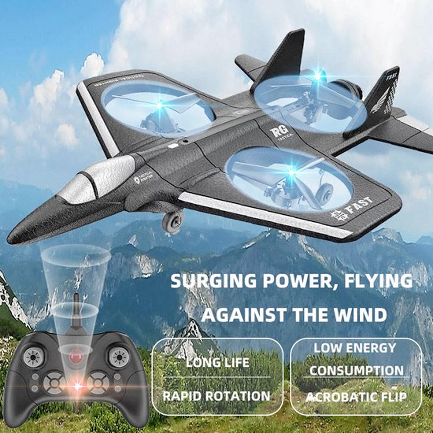 Wonky Monkey RC Quadcopter Drone Straaljager 3 Propellors Vliegtuig 2.4 Ghz Bestuurbaar Vliegtuig Zwart 09