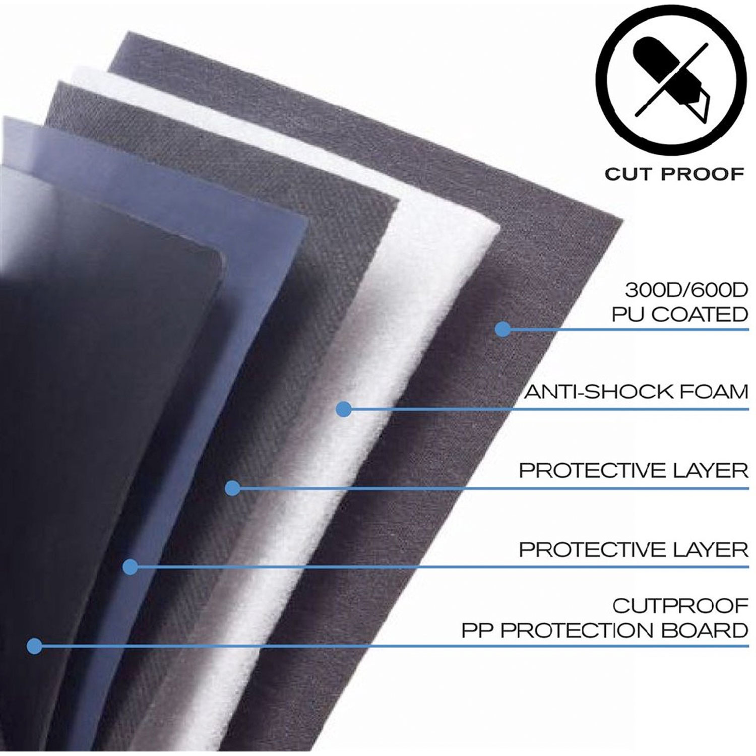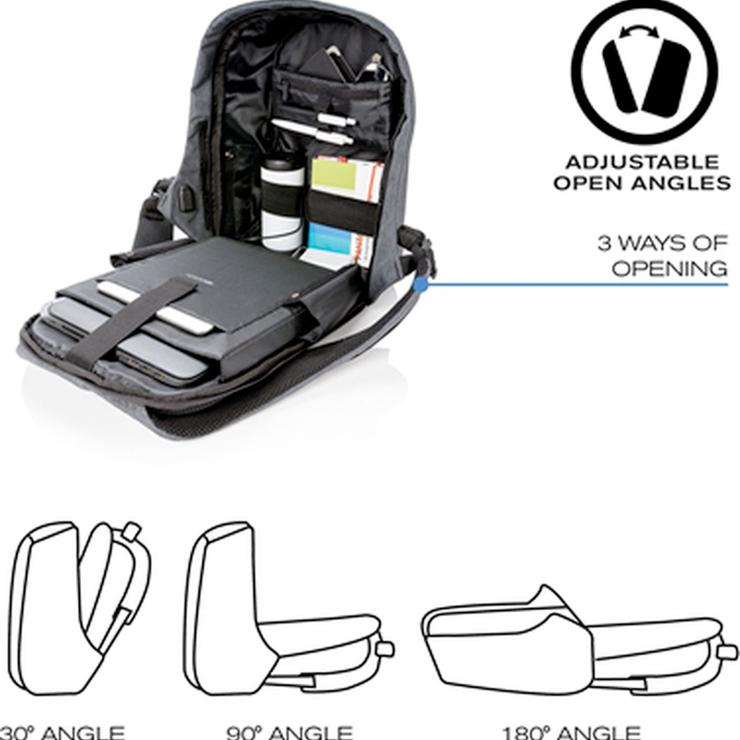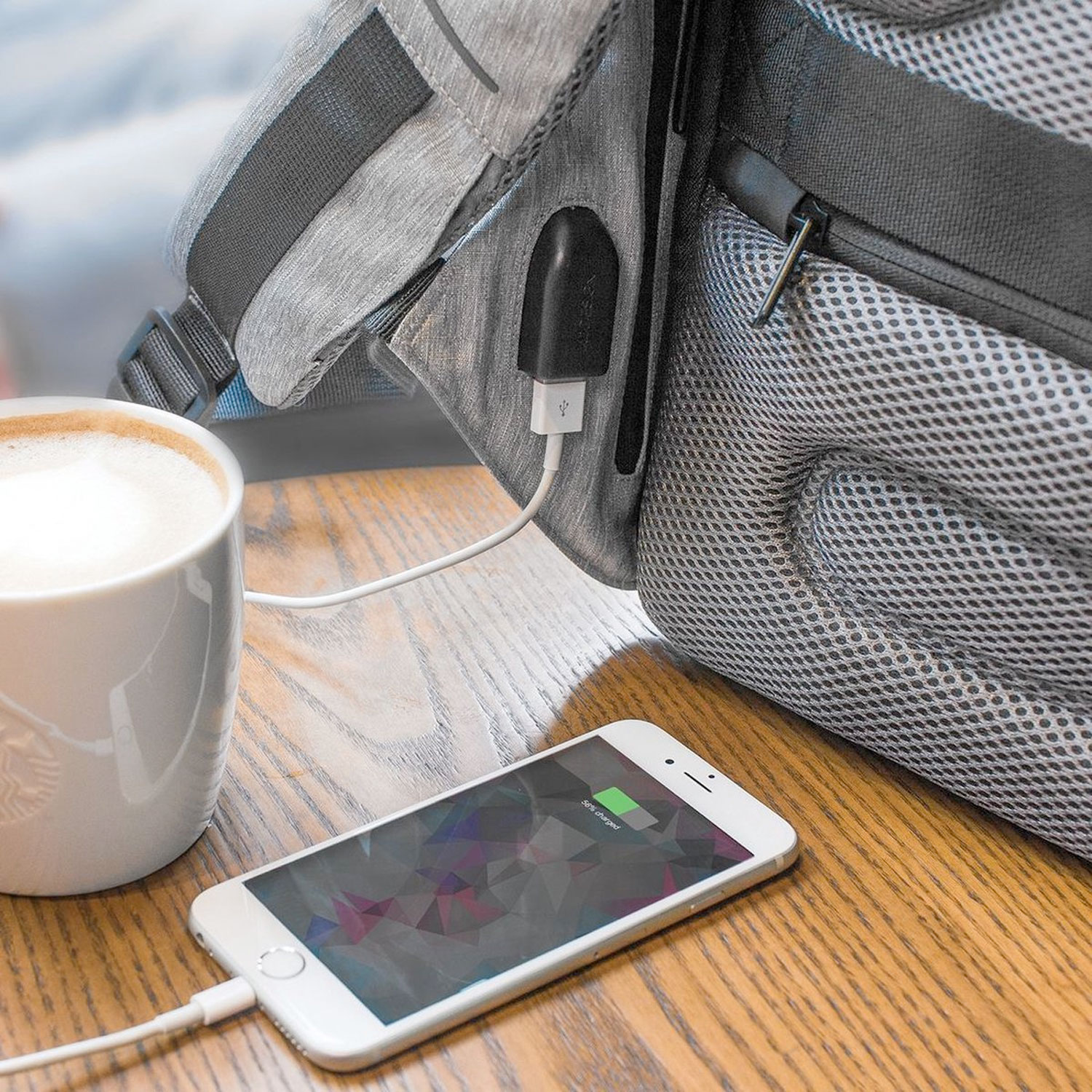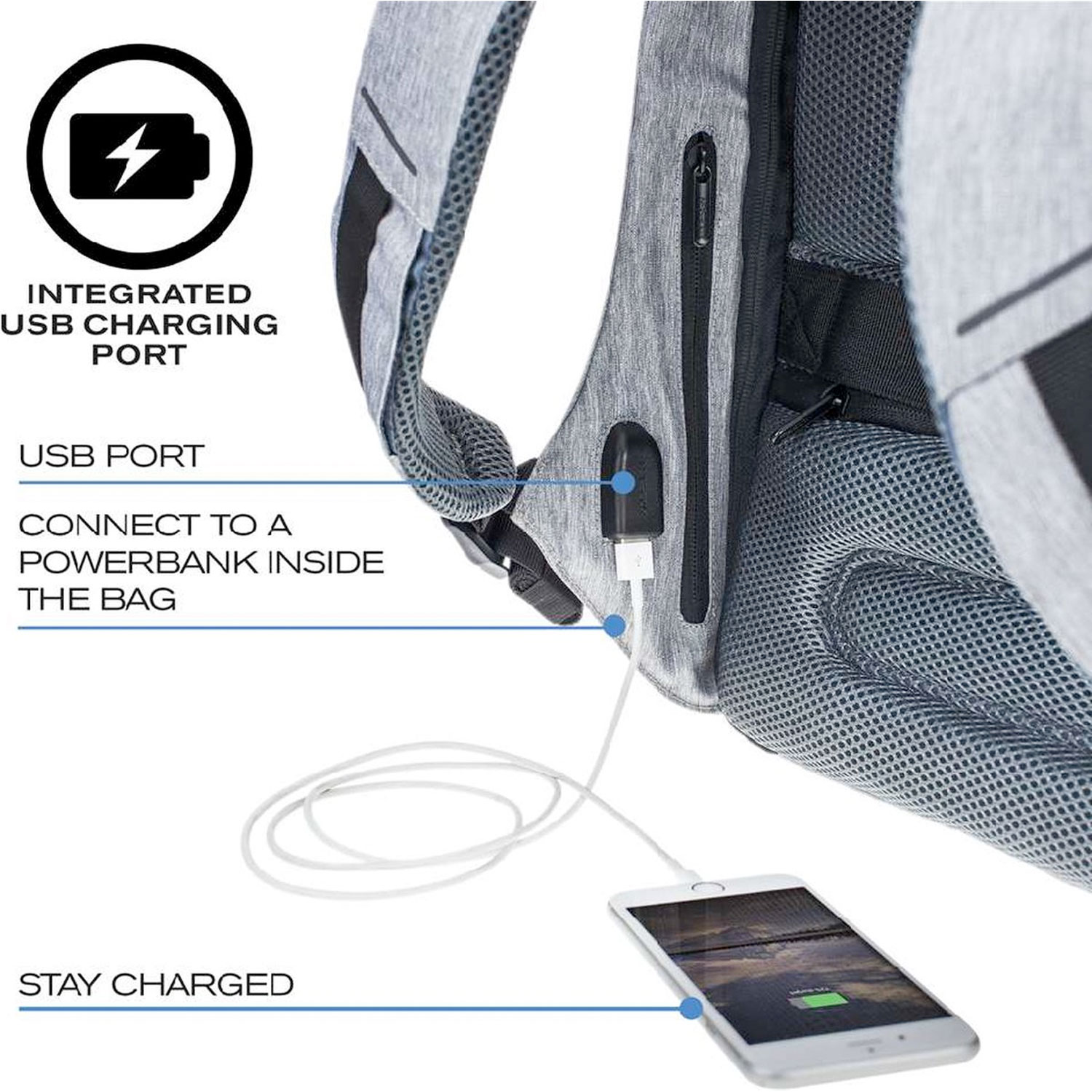 Naast de beveiligingsfuncties herbergt de tas ook een aantal handige kenmerken. Denk aan een geïntegreerde USB-oplaadpoort, waterafstotend materiaal, gewichtsbalanssysteem, schokbestendigheid, en YKK-ritsen.