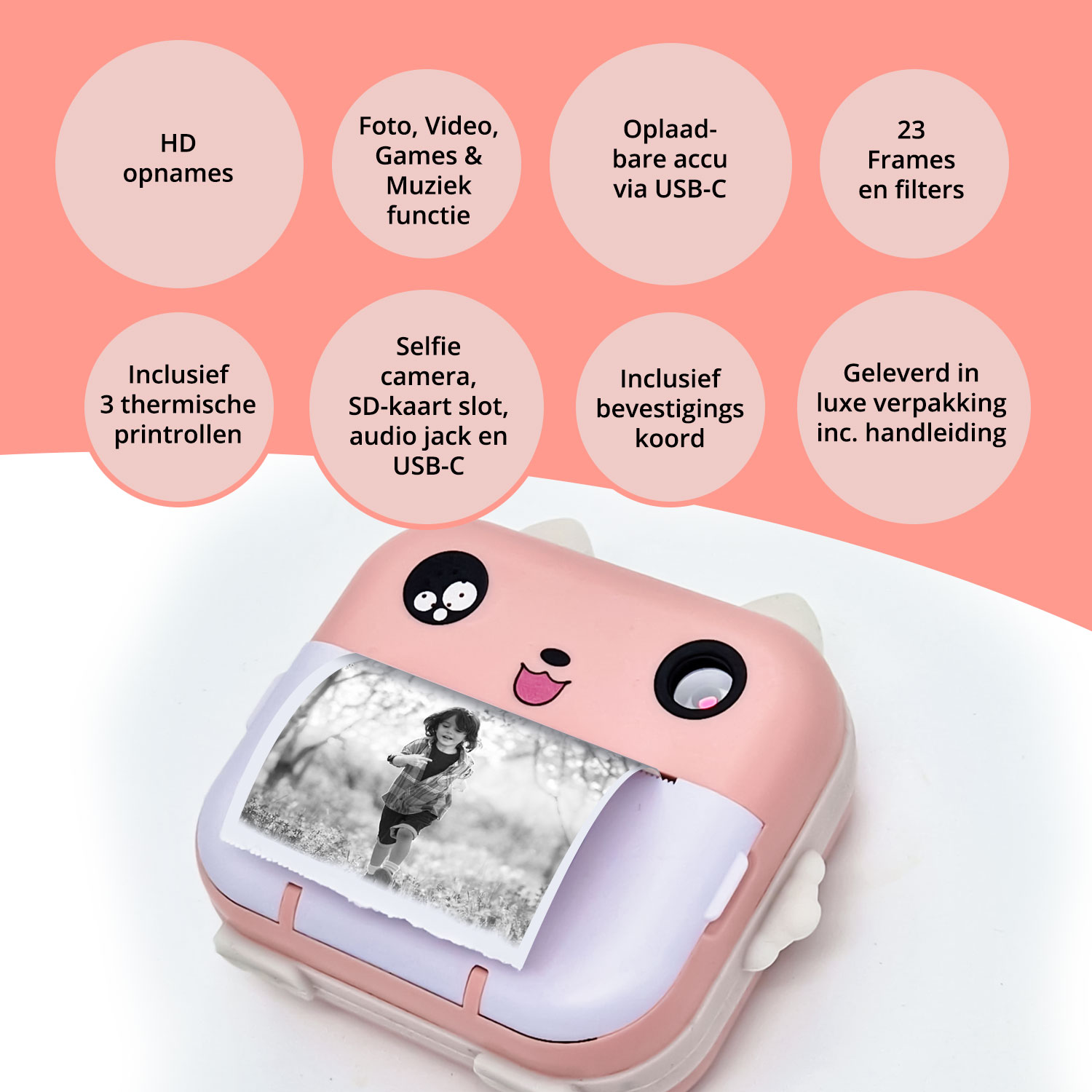 Maak je kind blij met deze geweldige instant print kindercamera. Of het nu gaat om het vastleggen van onvergetelijke momenten, creatieve projecten of het maken van leuke vlogs – deze camera heeft alles in huis. Bestel nu en ontvang direct de meegeleverde accessoires, zodat je kind meteen aan de slag kan!